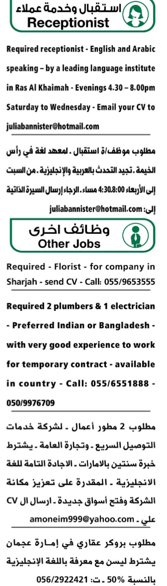 وظائف يومية بالإمارات نشرة الوظائف اليومية لجميع المجالات والتخصصات ليوم الثلاثاء 06 10 2020