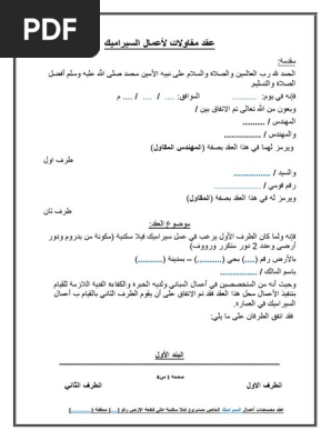 صيغة ونموذج عقد تصميم مشروع فيلا نادي المحامي السوري